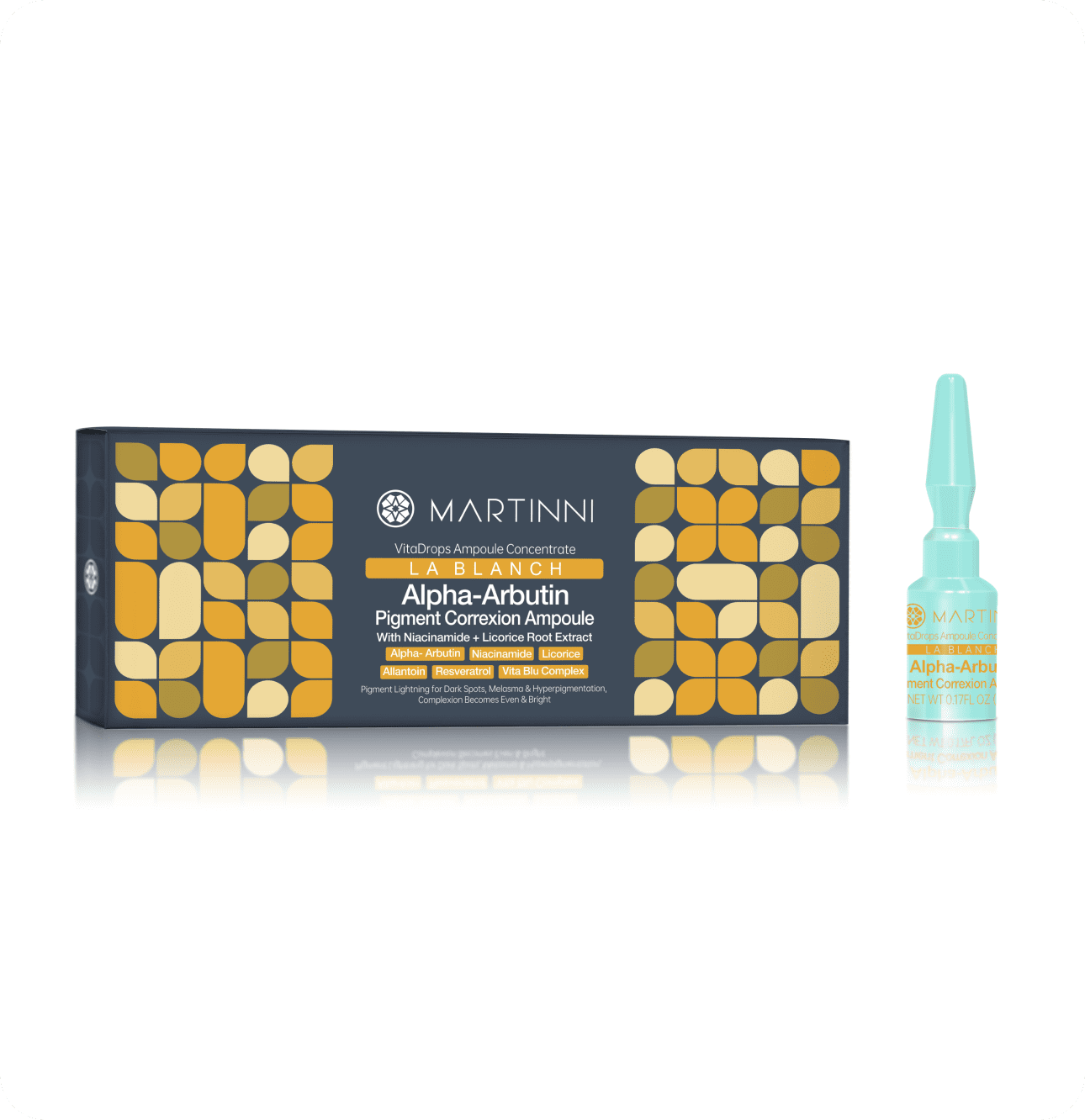 Achieve a brighter complexion with the Alpha-Arbutin Pigment Correxion Ampoule with Niacinamide + Licorice Root Extract. This powerful formula targets dark spots and hyperpigmentation. It works to lighten the pigment of skin discoloration including sun damage, brown spots, age spots, post-inflammatory discoloration, post-acne marks and melasma. This formula offers a safer alternative to hydroquinone, using Alpha Arbutin, Niacinamide, Vitamin C, and Kojic Acid. In addition to lightning pigmentation, it helps to give your skin a toned & even texture.
