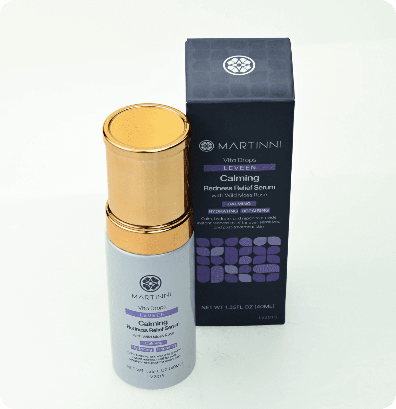 Soothe and repair over-sensitized skin with Martinni Beauty’s Calming Redness Relief Serum with Wild Moss Rose. It is formulated to soothe, calm, hydrate and repair over sensitized and post-treatment skin, providing immediate redness relief.