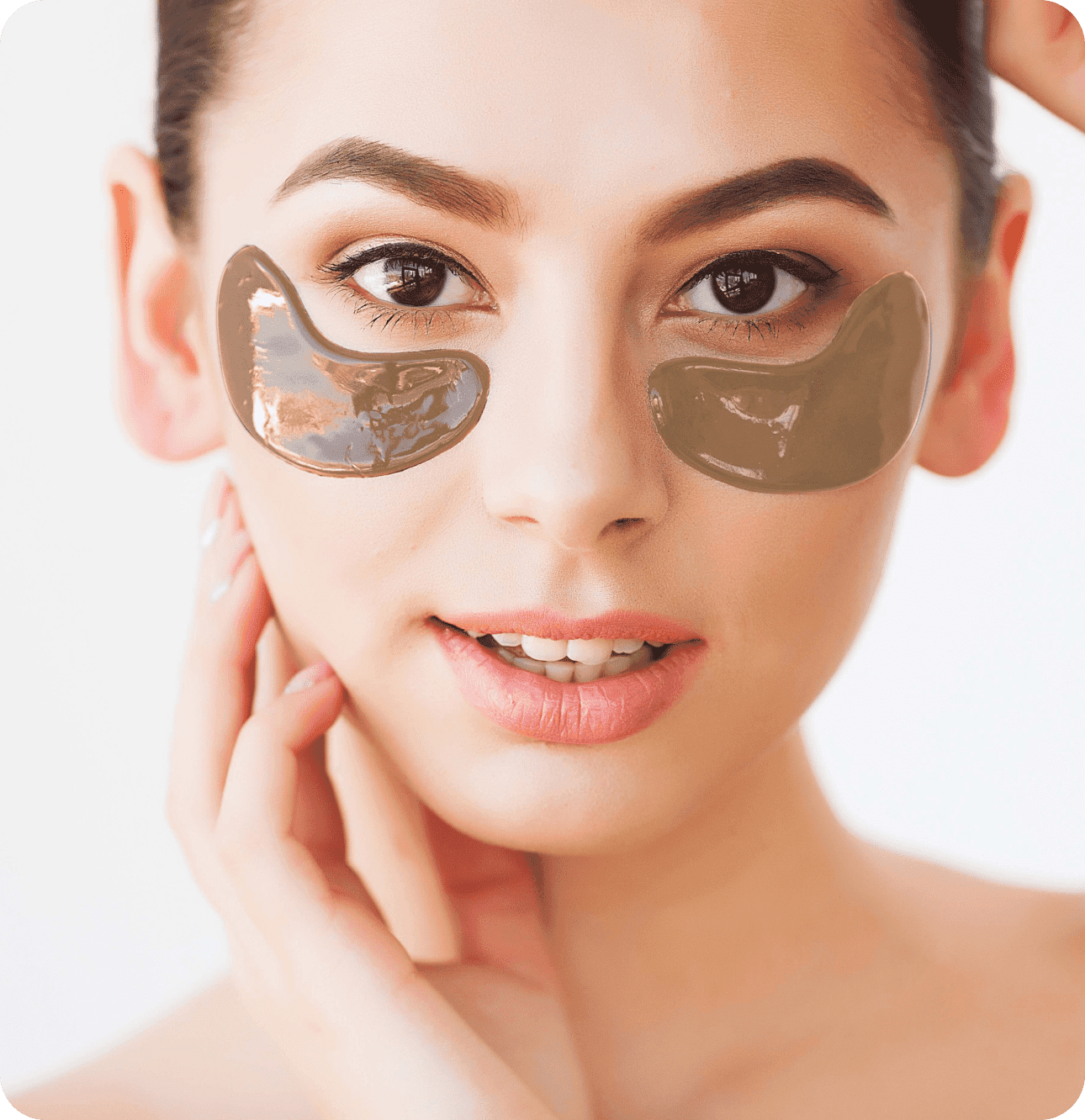 2. Open the foil pack, remove the two gel eye masks and place them evenly under each eye.