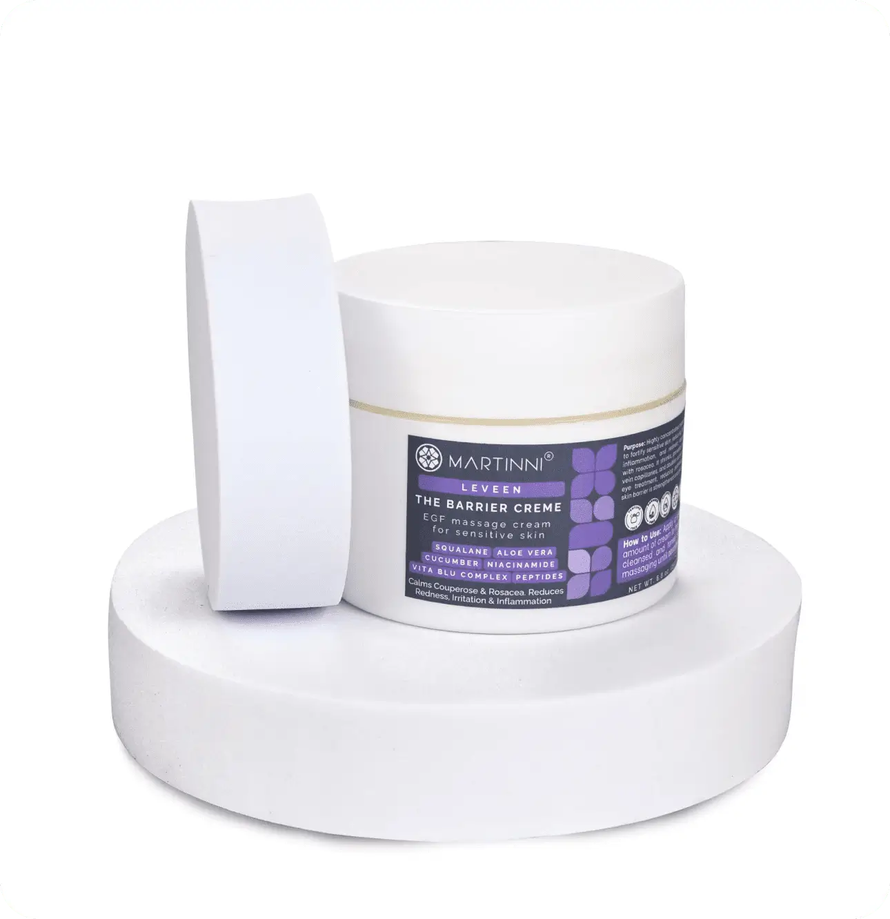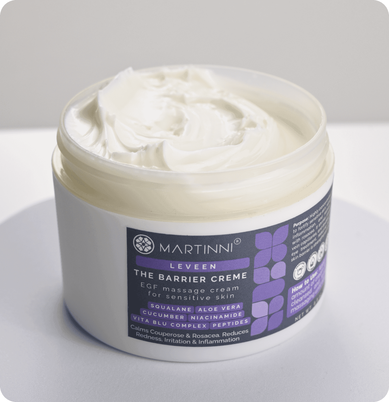 Awaken your skin’s potential with The Barrier Crème EGF Massage Cream from Martinni Beauty. This moisturizing cream is designed for young and mature skin susceptible to reddening and swelling and to telangiectasia. It reduces flushing and inflammation. The compounds, together with Vitamin C make capillaries shrink and reinforce their walls, preventing ruptures and micro-haemorrhages. Improves microcirculations, reduces puffiness and prevents appearance of sacs under the eyes. Liquidates harmful effects of free radicals and protects skin cells and capillaries from their destructive action and delicately greases and smoothes epidermis.